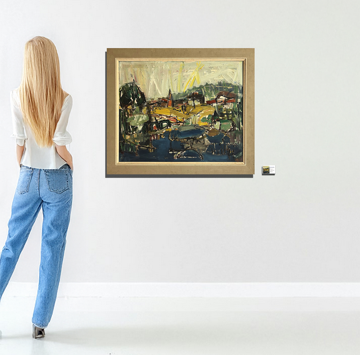 Photo note: The background of the photo showing the painting on the wall was partially created using AI.