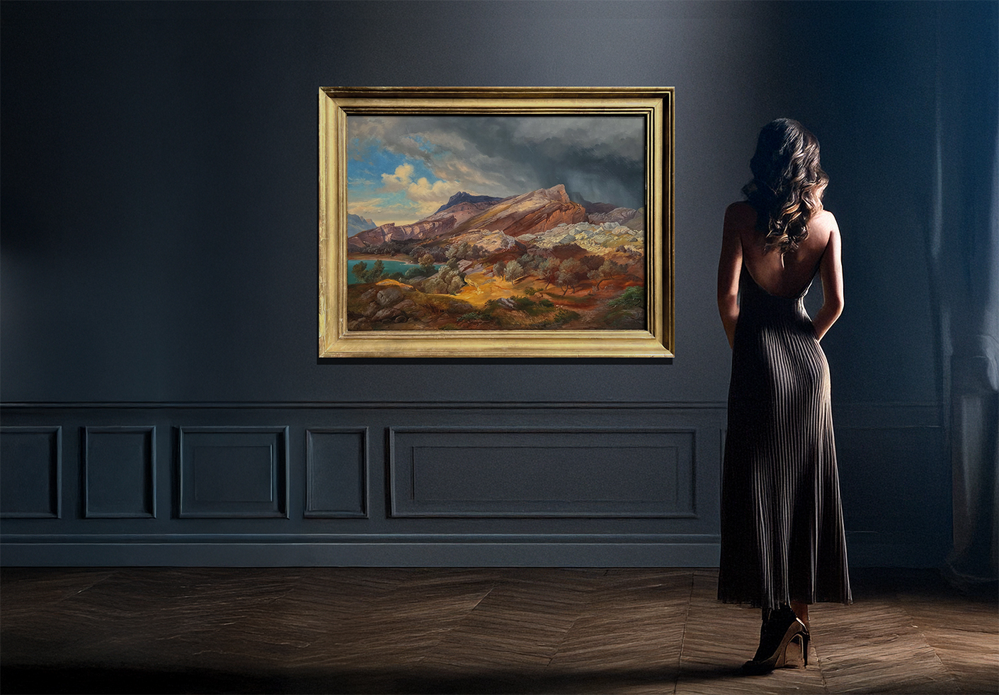 Photo note: The background of the photo showing the painting on the wall was partially created using AI.
