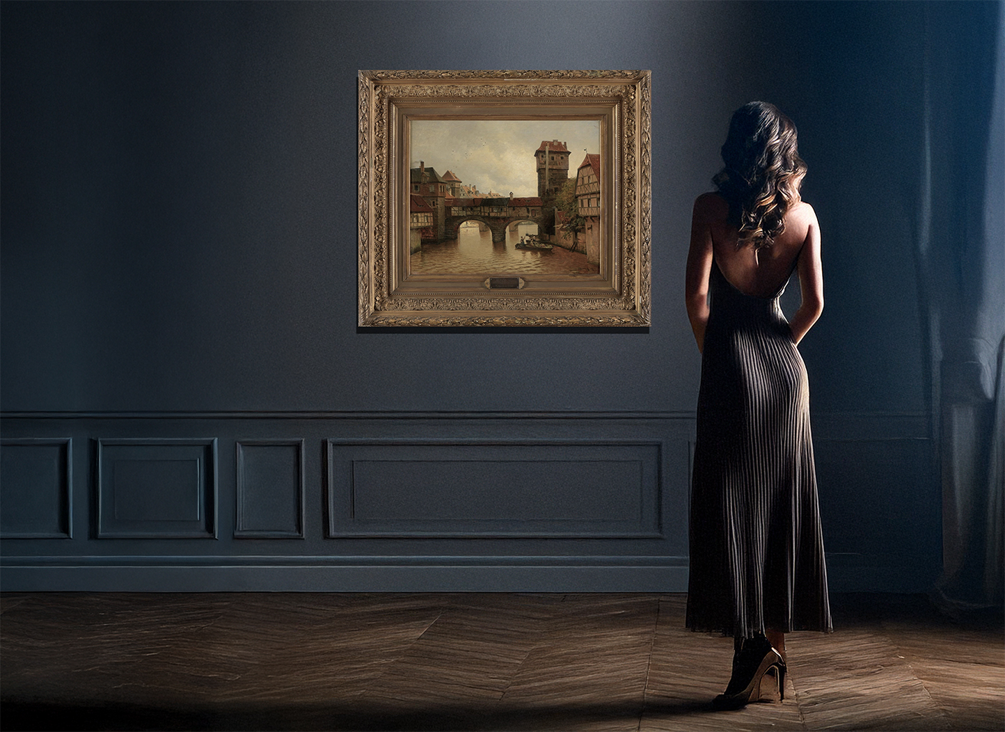 Photo note: The background of the photo showing the painting on the wall was partially created using AI.