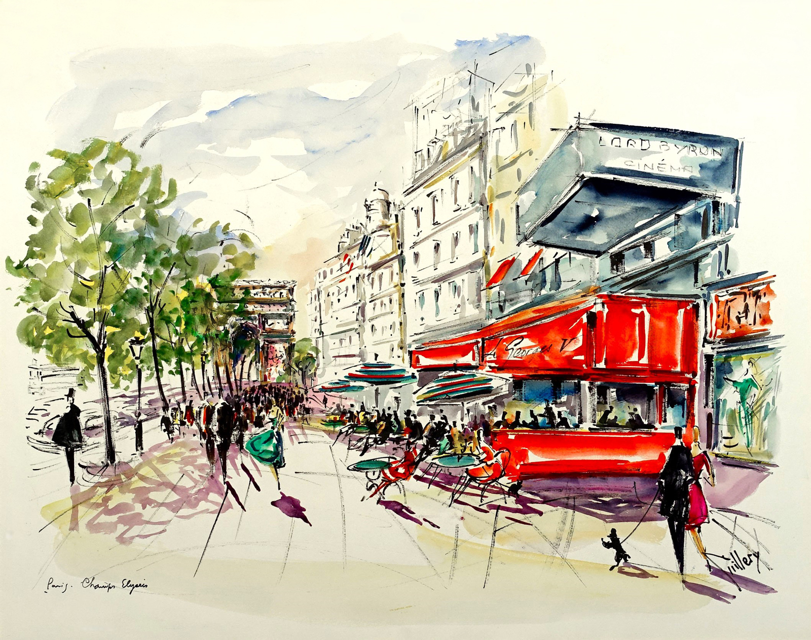 Jacques Guillery Paris Champs Elysee Aquarell Maße 57 x 45cm Maße mit Rahmen 69 x 59cm unten rechts signiert unten links Ortsbezeichnet rückseitig bez.