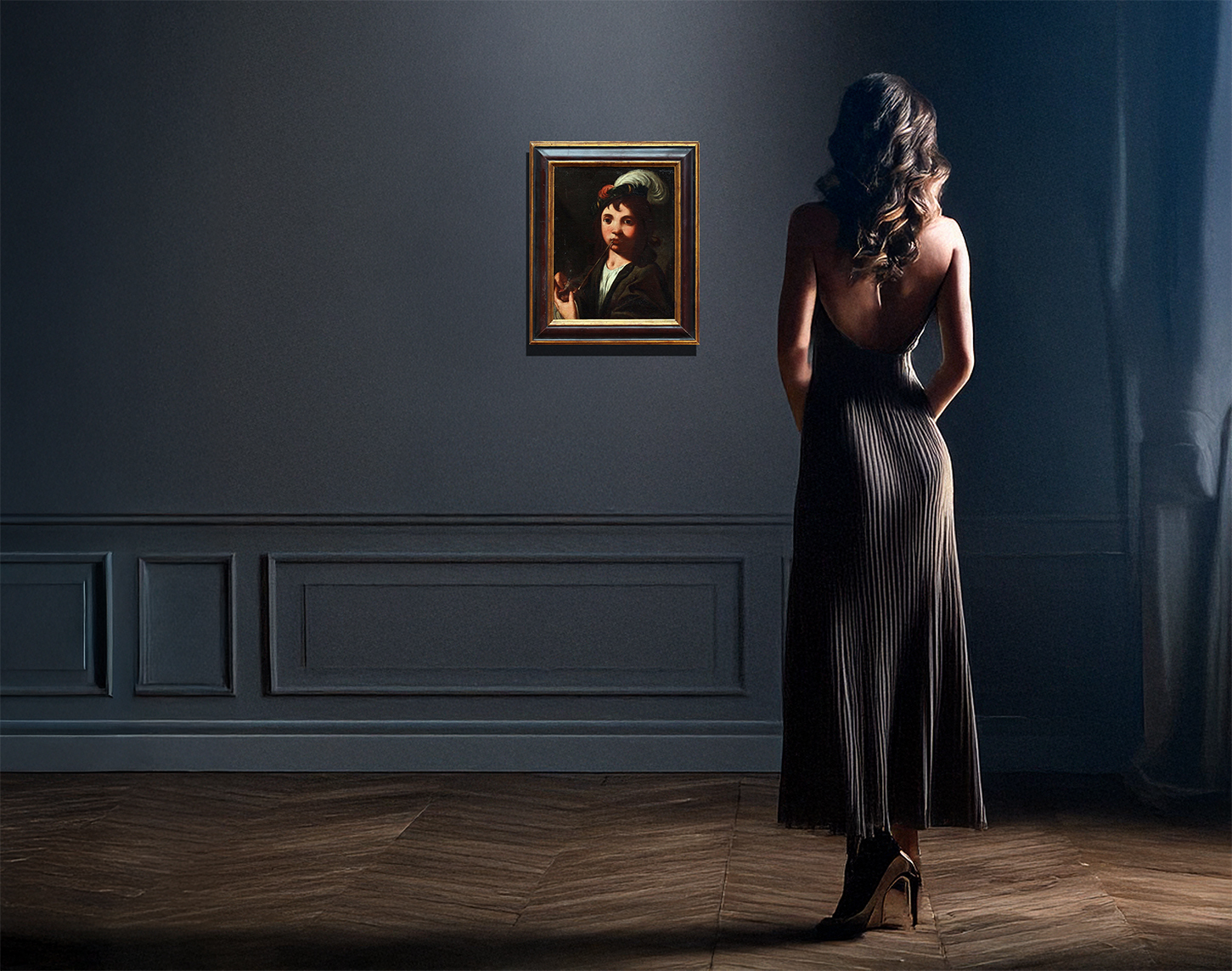 Nicolas Régnier, boy with feathered hat and pipe