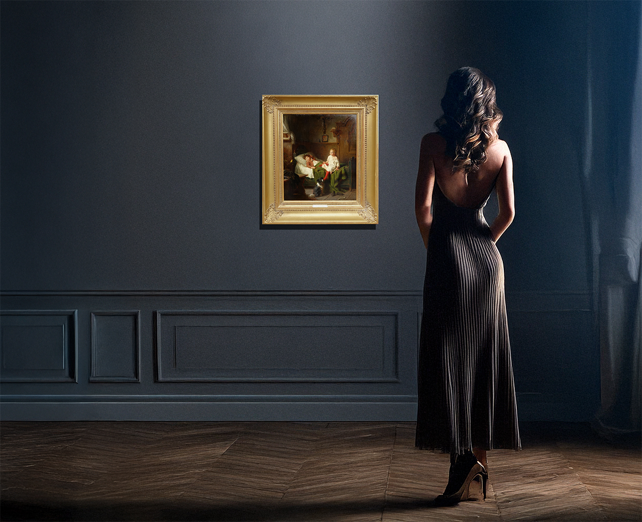 Photo note: The background of the photo showing the painting on the wall was partially created using AI.