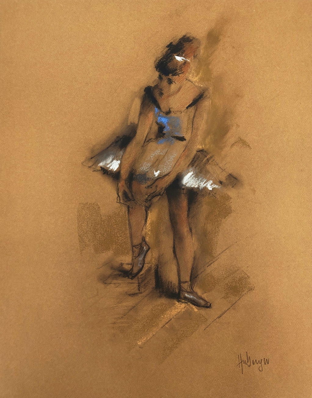 Pastel on light brown paper