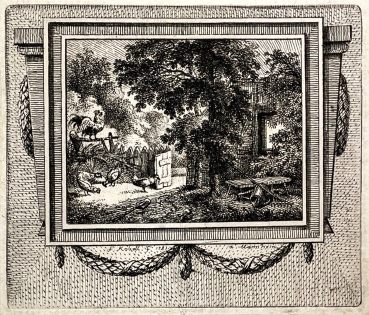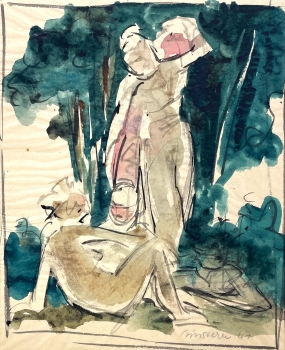 Unbekannt, Ruine am Waldweg mit Personenstaffage