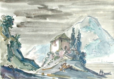 Ludwig Schäfer-Grohe, Landschaft mit Kirche in der Abenddämmerung