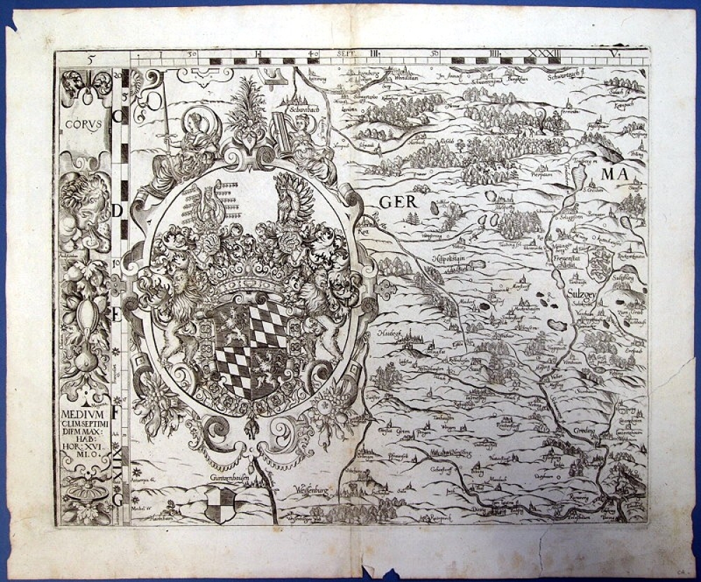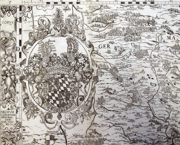 Cartographia Bavariae, Kupferstich-Karte um 1651, Gebiet um Hilpoltstein mit Schwabach, Wendelstein, Freystadt, Greding, Weissenburg und Gunzenhausen