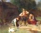 1857 erschien sein erstes Ölbild „Venus, welche dem Amor ein Ziel weist“ (in wiederholter Bearbeitung 1863) und 1865 eine „Flora“, „Kinder mit Früchten“ (1866) u. ein „Mütterglück“ betiteltes Bild. Dann ging D. zu dem ihm mehr zusagenden Genre mit besserem Erfolg über, der „Hufschmied-Wunderdoktor“, eine ländliche „Toilette“ (1868) und das niedliche Scherzo „Der süße Freund“ (1869), zwei Kinder, einen riesigen Zuckerhut umhalsend. Mit solchen Kinderszenen kam D. in sein eigentliches Fahrwasser. Weiter folgten „Er muß heim!“, „Frugale Mahlzeit“ (Katzen fütternde Mädchen, 1870), „Heimlichkeiten“, „Unfreiwillige Heimkehr“ (1871), Kinder spielen „Eine vornehme Dame“, der „Fatale Fischfang“, das einzige Bild D.s, welches vervielfältigt als Holzschnitt in der „Gartenlaube“ (1878 p. 639) erschien), da der Maler alle Aufforderungen von Verlegern u. Illustrierten Zeitschriften hartnäckig abwies, um dereinst seine sämtlichen Schöpfungen in einem eigenen Farbendruck-Album selbst herauszugeben, wozu er leider niemals Zeit fand. D. verstand es nicht, seine Arbeiten in dieser Beziehung auszubeuten, ebenso wenig wie er sein Vermögen schätzte, das teilweise ohne sein Verschulden nur allzu früh zerrann. Als er dann ernstlich arbeiten wollte, war es zu spät, da ein vorschreitendes Lungenleiden Ruhe und Schonung verlangte. Daß Sorge u. Not ihm nicht nahe trat, bevor sein Leben erlosch, verhinderten wackere Freunde. Beilage 56 zur „Allgemeinen Zeitung“ v. 25. 2. 1883. – Fr. v. Bötticher, Maler-werke des 19. Jahrh. 1895 I 213. H. Holland.Deichelmann, Mathias, Kunstschreiner in Kitzingen, arbeitete.