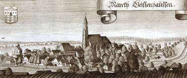 Der Kupferstich stammt aus der vierbändigen Historico-topographica descriptio Bavariae - entstanden von 1701 bis 1726 und bedeutet: historisch landschaftlich geordnete Beschreibung Bayerns zeigt nach Rentämtern geordnet, Abbildungen von bayerischen Städten, Schlössern und Klöstern.