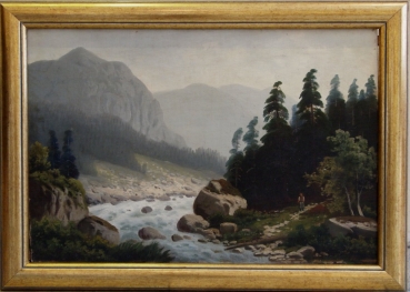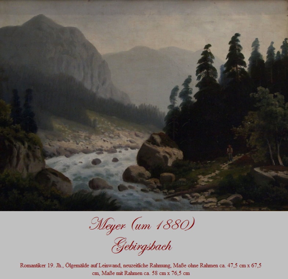Romantiker 19. Jh., Ölgemälde auf Leinwand, um 1890, Maße ohne Rahmen ca. 47 cm x 65 cm, Maße mit Rahmen ca. 58cm x 76 cm.