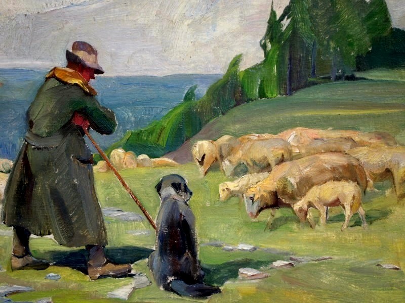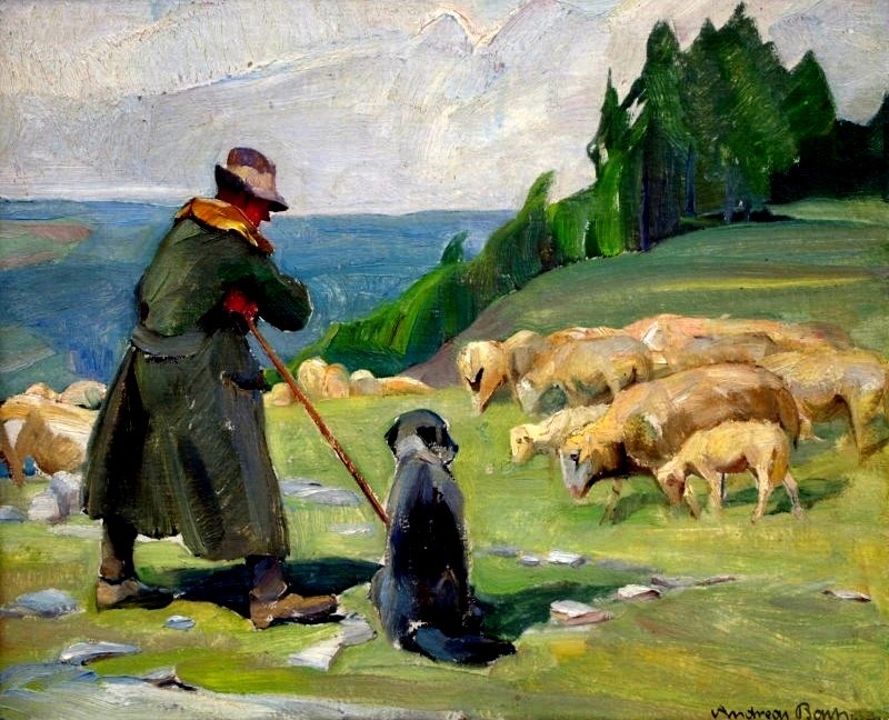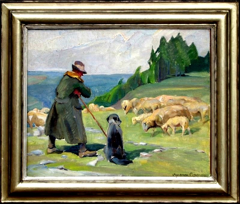 Andreas Bach (1886 – Nürnberg – 1963) Nürnberger Impressionist, Schüler von Heinrich von Zügel. Lehre als Lithograph. 1901-1907 Besuch von Abendkursen an der Nürnberger Kunstgewerbeschule bei Heinrich Heim. 1909-1914 Studium an der Akademie der Bildenden Künste in München bei Angelo Jank und Heinrich von Zügel. Ab 1918 freischaffender Maler in Nürnberg. Gründungsmitglied der Künstlergruppe 'Die Hütte'. Ausstellungen in Dresden, Leipzig, Chemnitz, Fürth, Erlangen, Bamberg, Coburg, Würzburg, Heidelberg, Nürnberg, Budapest 1929, Kopenhagen 1930. 1961 große Sonderausstellung in der Fränkischen Galerie Nürnberg. Ehrenmitglied der Gesellschaft der Zügelfreunde, Würth a/Rh. Zahlreiche Gemälde im Besitz der Stadt Nürnberg, Veröffentlichungen: u.a. Velhagen u. Klasings Monatshefte, Das Bild (1935), La Revue Modern (1929), Heinrich von Zügel und die Wörther Malerschule von Dr. W. Steigelmann.