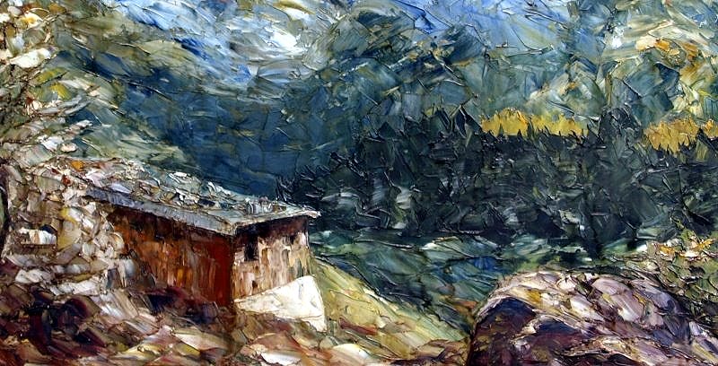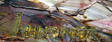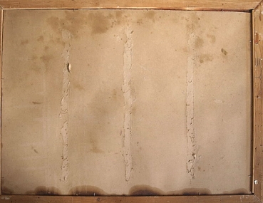 Das Gemälde ist von sehr kräftiger schöner Farbgebung, jedoch bedürfte es einer Reinigung, auch sollte es neu gerahmt werden. Das Foto der Rückseite zeigt den Originalkarton, zur Verstärkung wird noch eine weitere Schutzplatte hinterlegt. Das Gemälde ist unten links signiert (s. Foto),Für Hinweise auf den Maler sind wir dankbar.