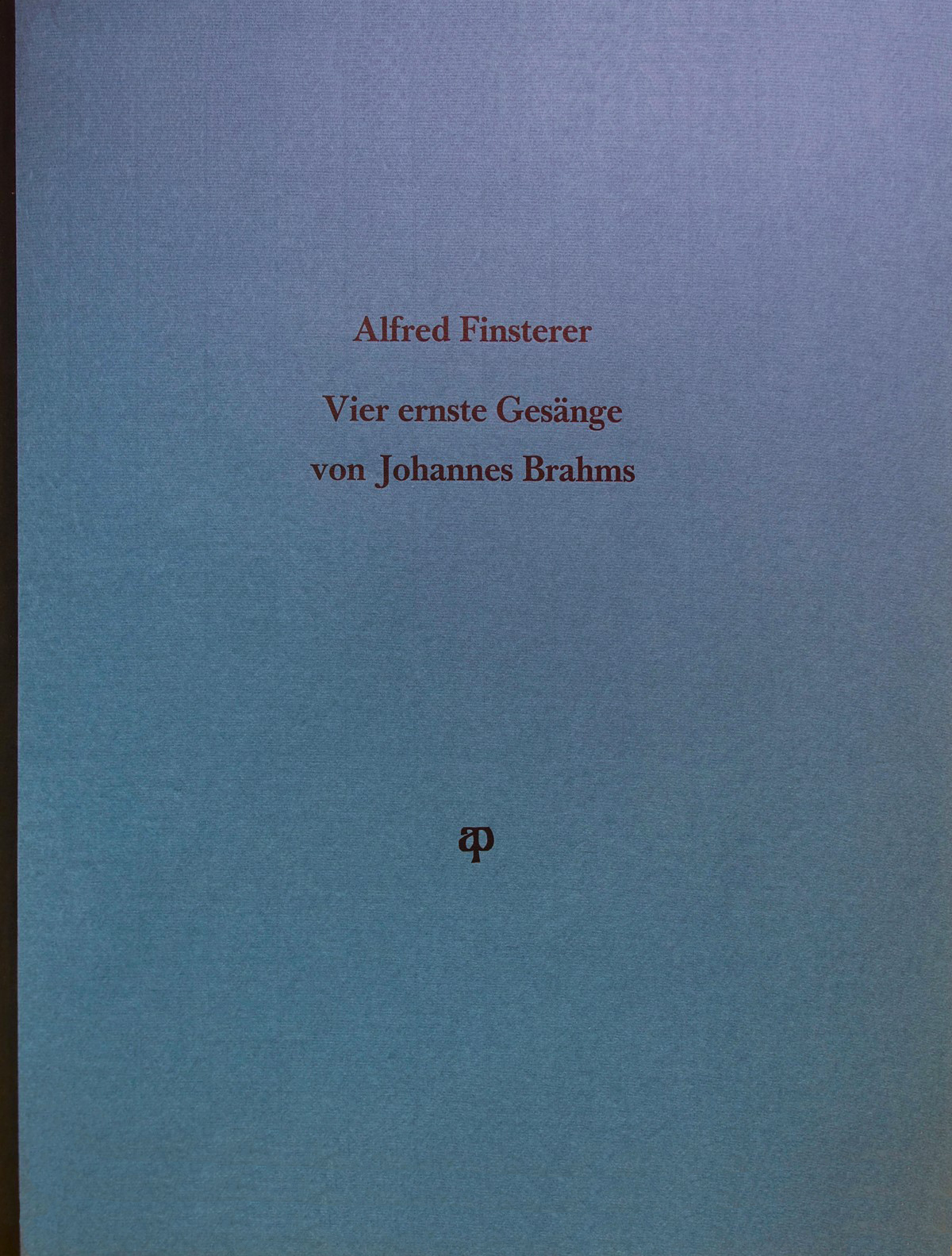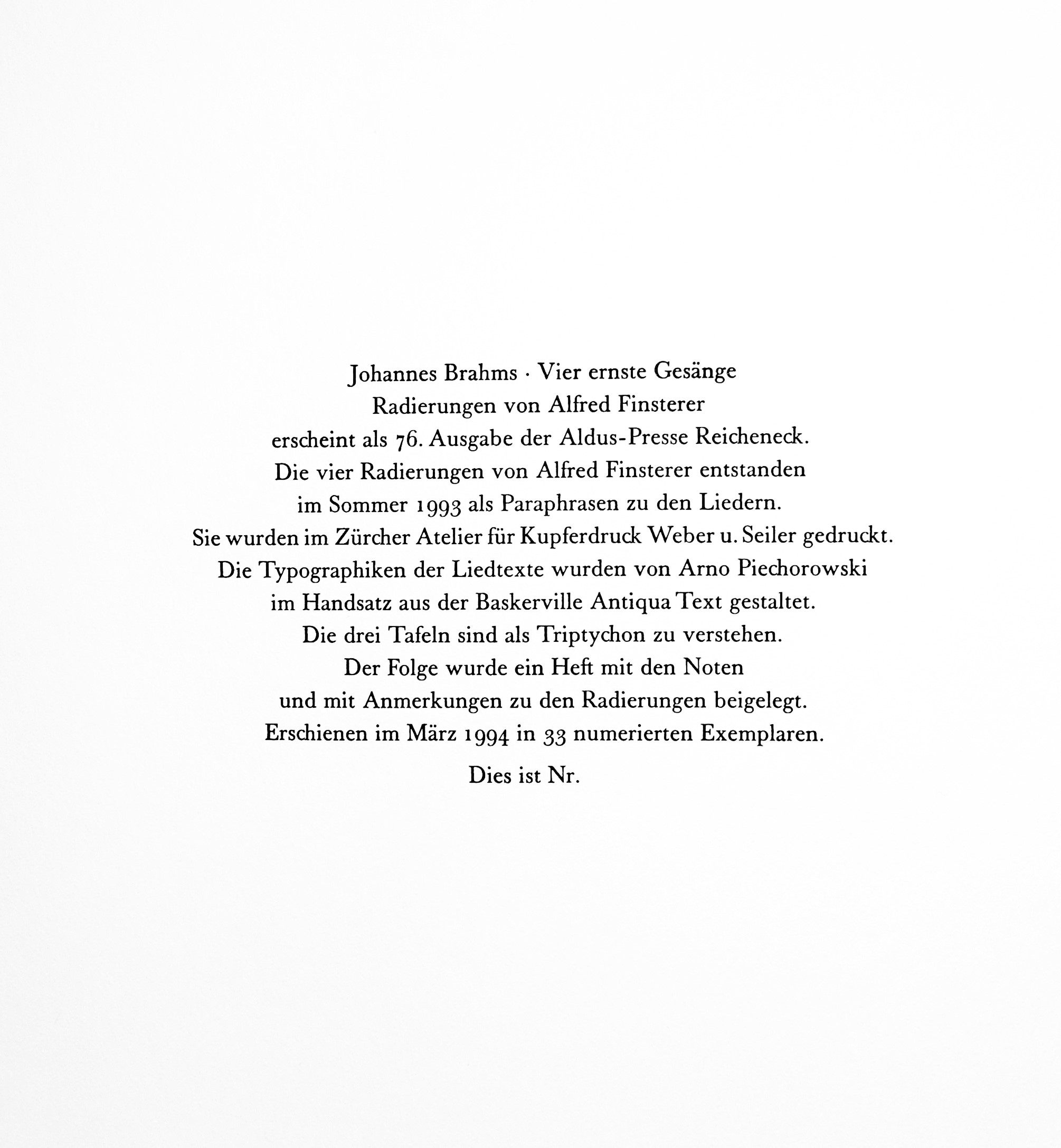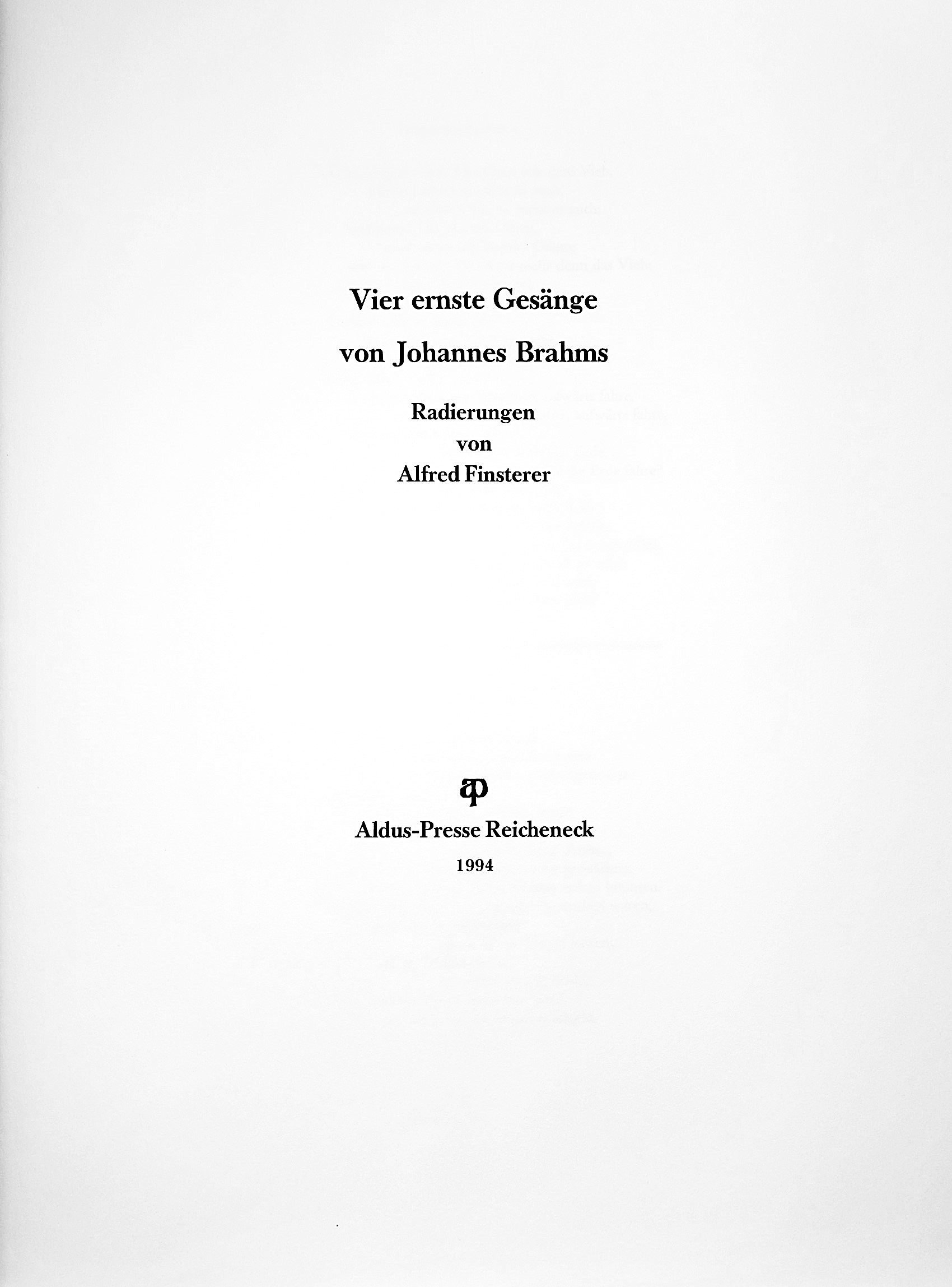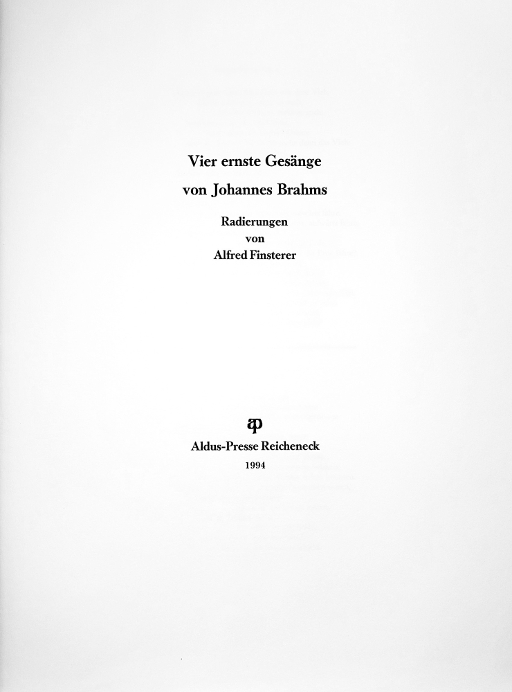Johannes Brahms Vier ernste Gesänge Radierungen von Alfred Finsterer erscheint als 76. Ausgabe der Aldus-Presse Reicheneck.