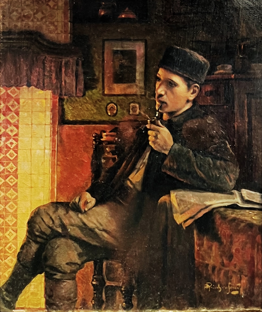 Alois Heinrich Priechenfried, Portrait eines jungen Mannes mit Pfeife in der Stube