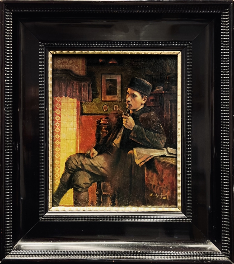 Preview: Alois Heinrich Priechenfried, Portrait eines jungen Mannes mit Pfeife in der Stube