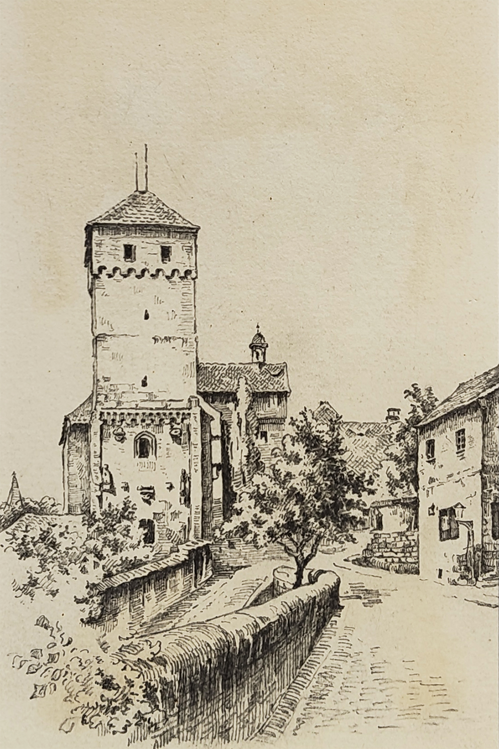 Schotte Eduard, Kunstmaler, um 1890-1932 in Nürnberg tätig, wo er hauptsächlich als Illustrationsmaler für Postkarten, Stadtführer usw. arbeitete. 1906 wohnte er in der Friedrichstraße 56, 1914/24 in der Bucher Straße 97 und 1930/32 in der Bucher Straße 47/IV. Werke: Mappe „Bilder aus Nürnbergs Mauern“, 50 Photogravüren nach Originalzeichnungen von E. Schotte, Nürnberg 1894. MuS: NÜRNBERG, MStN: Gemälde, Zeichnungen und Aquarelle.