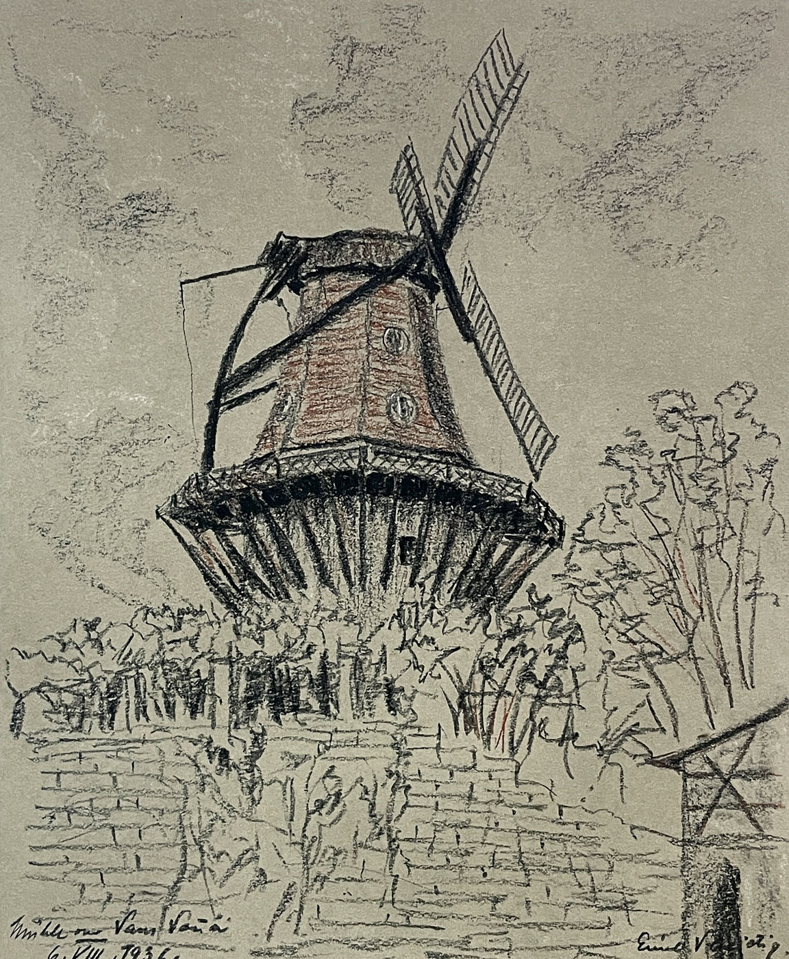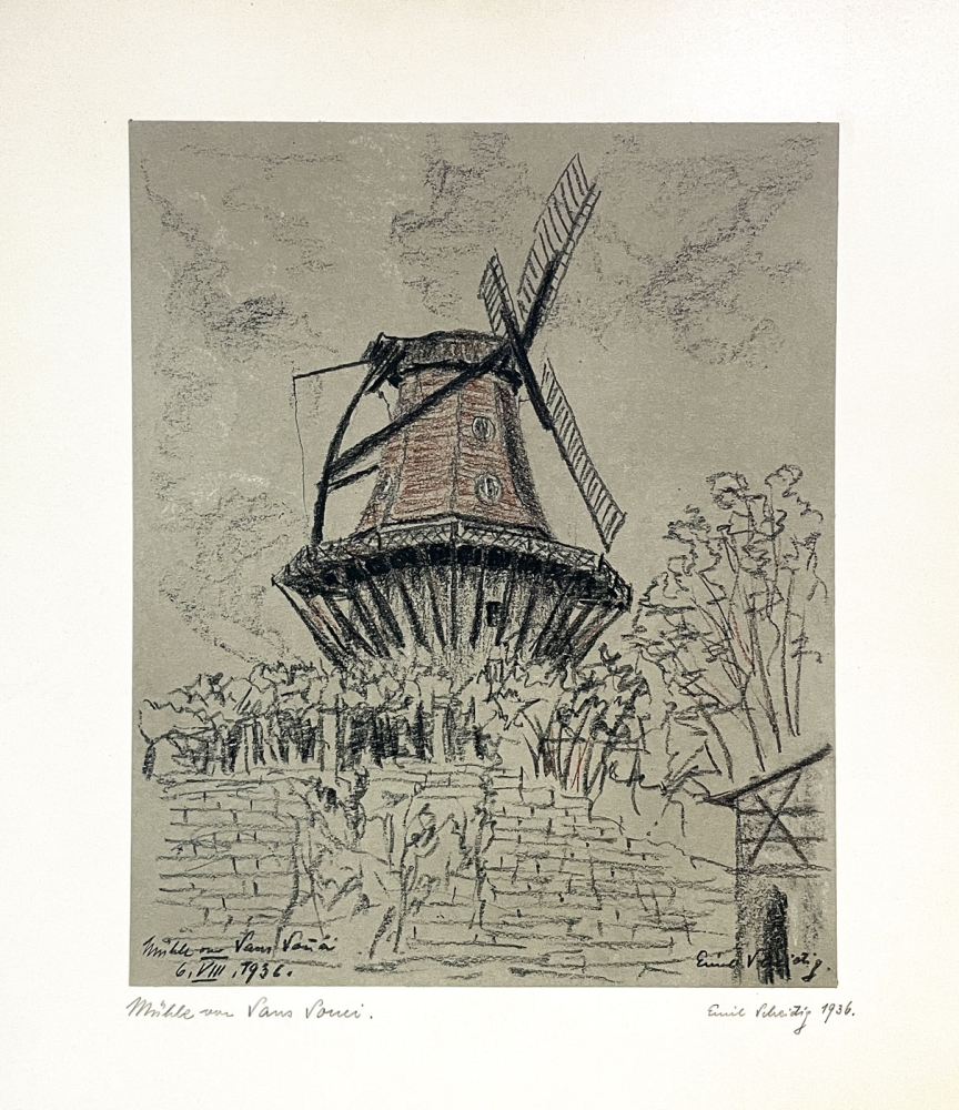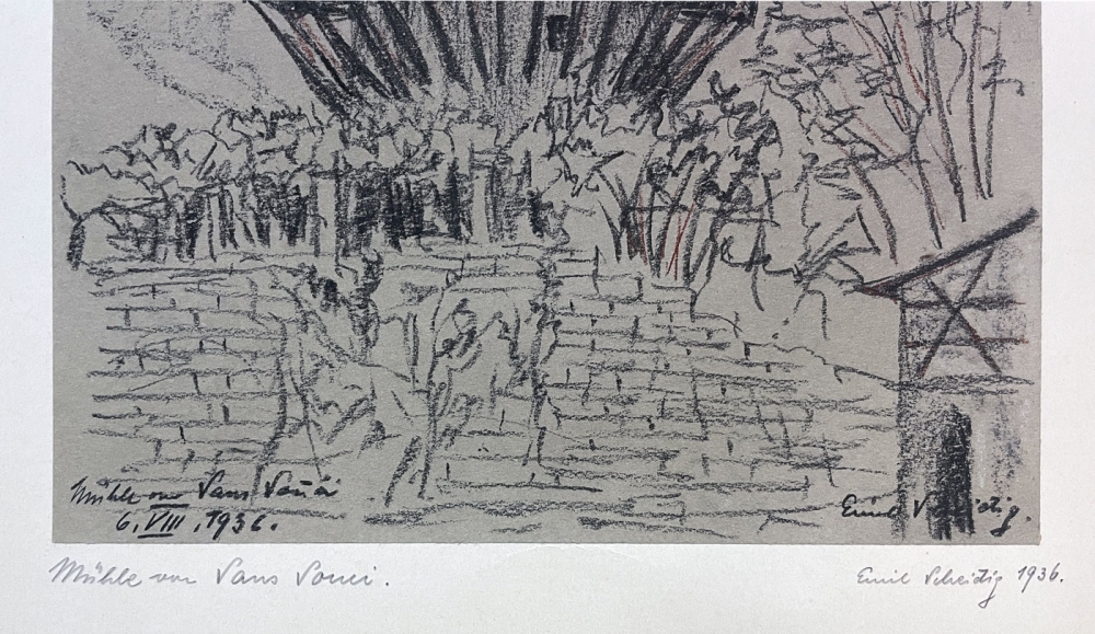 Emil Scheidig Mühle von Sans Souci (1936) Pastell Maße: 33 x 27 cm unten rechts signiert, unten links bezeichnet und datiert 6. VIII 1936