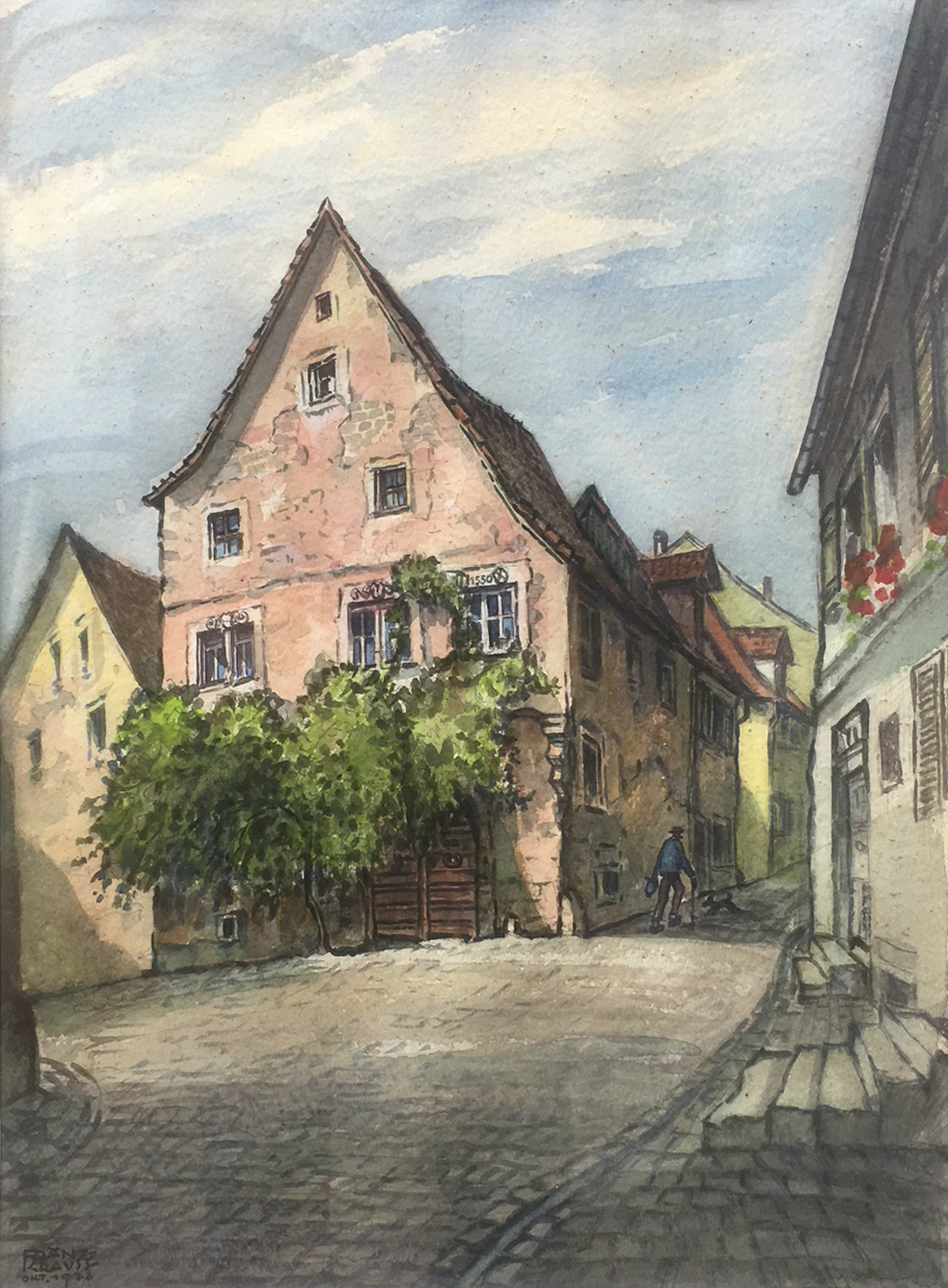 Franz Andreas Krauss (1909 - Fürth - 1983) Landschaftsmaler, Graphiker. Besuch der Staatsschule für angewandte Kunst Nürnberg unter Rudolf Schiestl und Max Körner. Krauss lebte als Maler und Graphiker in Nürnberg und malte in Öl und Aquarell vorwiegend Motive aus Nürnberg und der Fränkischen Landschaft. Mitarbeiter des Dt. Hausbuch-Verlages. Dürer-Preisträger. Seine Werke befinden sich in den Museen der Stadt Nürnberg, Privatsammlung Grieb. Lit.: Vollmer, Nürnberger Künstlerlexikon hrsg. v. M. Grieb.