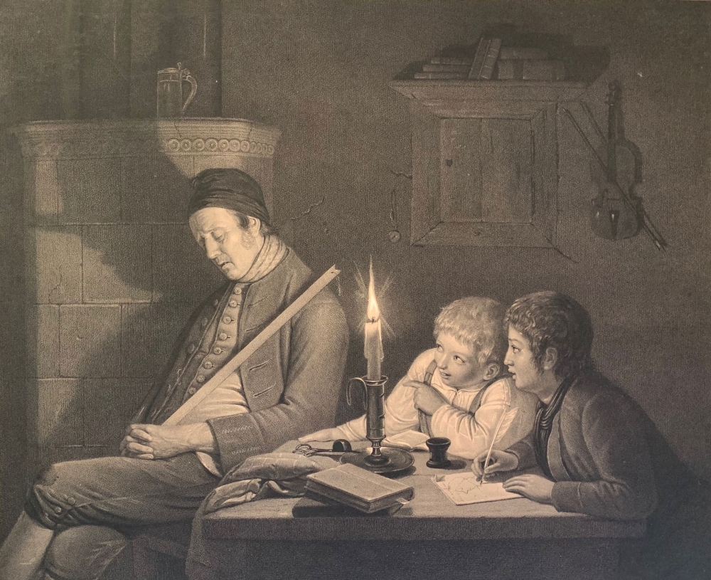 Der eingeschlafene Schulmeister Lithographie, unsign., 38 x 31 cm
