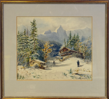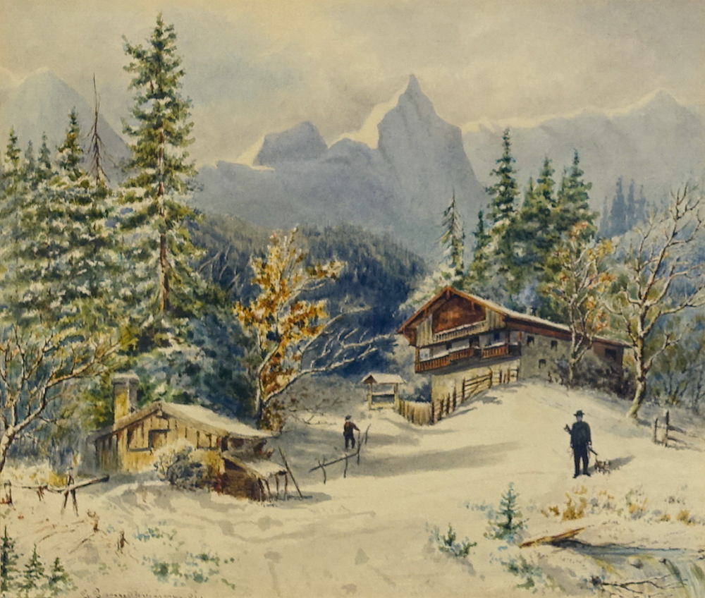 Georg Gsundbrunn, Alpine Winterlandschaft mit Jäger