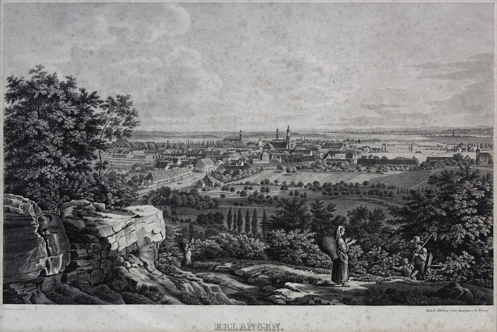 rechts unten beschriftet "Nach H. Adam auf Stein gezeichnet v. G. Kraus"