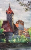 Reininger, Hans, Kunstmaler, *19. 1. 1890 Ingolstadt - † 7. 2. 1968 Nürnberg. Sohn des Bruno, Maler und Tüncher. ∞ I) 24.5.1919 Karoline Mägerlein (*30.12.1886 - † 23.12.1963), zwei Kinder; II) 3.3.1966 Babette (gen. Bertl) Büttner (*6.6.1896 - † 3.3.1970), Pianistin. 1890 kam er mit den Eltern nach Nürnberg. 1934 nannte er sich Malermeister, 1940 erstmals Kunstmaler. Von ihm sind einige Aquarelle mit Nürnberger Ansichten bekannt. Um 1932/52 wohnte er in der Fürther Straße 83a. Mitglied der Künstlerklause. Werke: Zyklus „Westfront 1918, Kameraden“, Aquarell. MuS: NÜRNBERG, Slg. Grieb: 3 Aquarelle. Lit.: Künstlerklause, 1958, 1983. Ausst.: 1933/3; 1949/1; 1950/1; 1951/1.