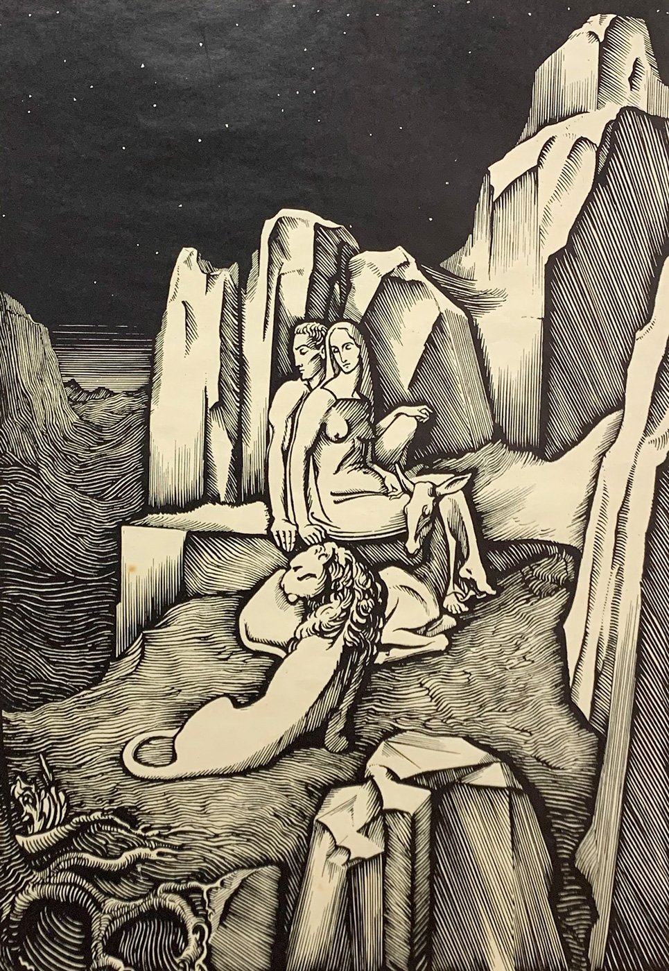 Hans Wiedemann, Liebespaar mit Löwe in der Sternennacht