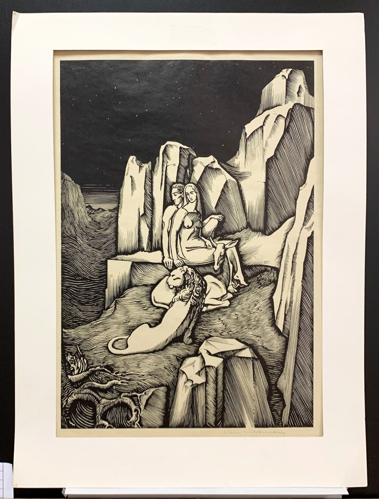 Preview: Hans Wiedemann, Liebespaar mit Löwe in der Sternennacht