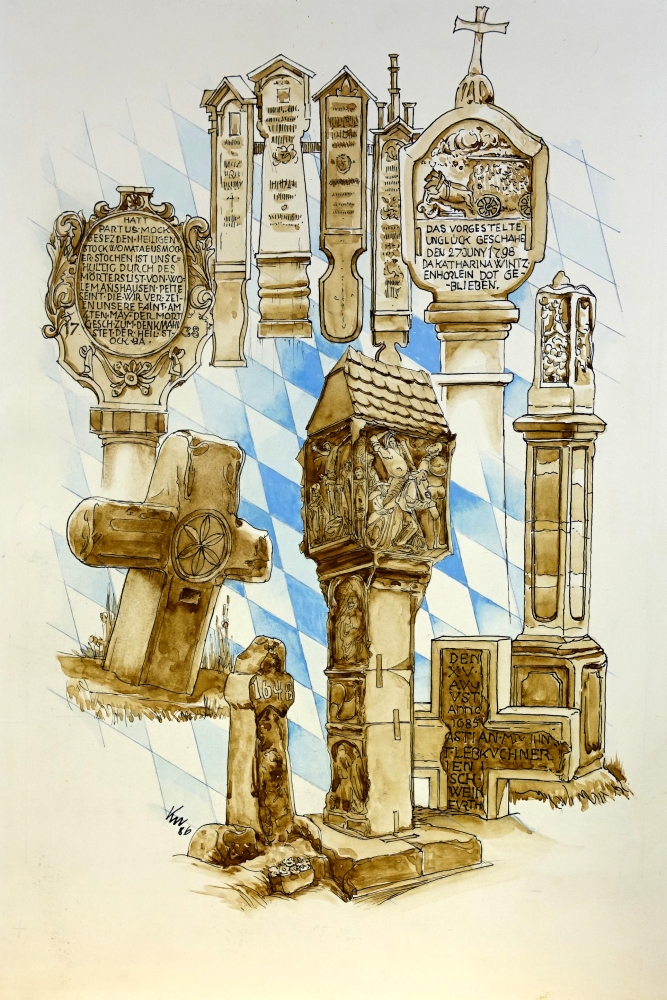Heinrich Kuchenreuther, Grabsteine hinter bayrischem Flaggenmuster