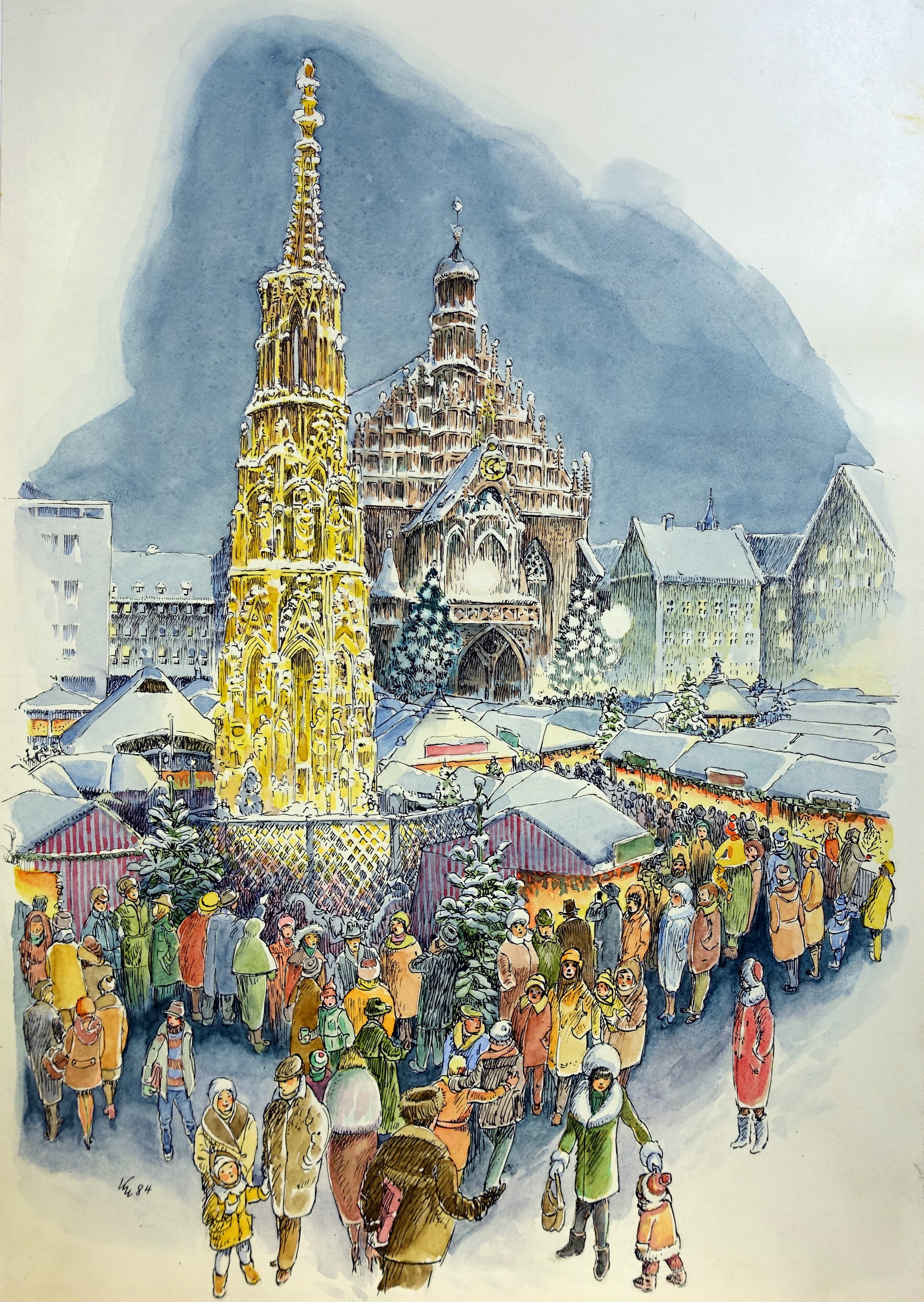 Heinrich Kuchenreuther, Hauptmarkt Nürnberg mit Blick auf die Frauenkirche im Winter