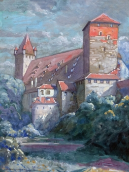 Buschmann, Hermann, Landschaftsmaler, * 3. 12. 1875 Osterholz-Scharmbeck/Bremen - † 20.9.1961 Kallmünz/Opf. Lehre als Dekorationsmaler in Bremen, Schüler der Privatschule von Prof. Hermann Groeber und Moritz Weinhold in München, Studium an der AdBK München. 1901 Übersiedlung nach Nürnberg, 1902-03 Besuch der Kunstgewerbeschule Nürnberg. Seit 1908 freischaffender Maler. Sein Werk umfasst vor allem Landschaften und später auch Portraits in Öl, Tempera und Aquarell. 1906 wohnte er Wiesenstraße 118, 1910/14 Rennweg 70/IV, 1916/22 Feldgasse 51, 1929/32 Burgmaierstraße 11; seit 1944 in Kallmünz/Opf. ansässig. Mitglied der Nürnberger Kunstgenossenschaft, der Künstlergruppe „Die Hütte“, des Künstlervereins sowie der Künstlerklause.