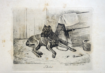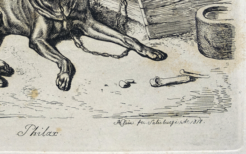 Johann Adam Klein (1792 Nürnberg – 1875 München) Radierer, Maler und Lithograph. Klein nahm im Alter von 8 Jahren Zeichenunterricht bei Georg Christoph Bemmel, besuchte 1802 die Nürnberger Zeichenschule unter G. Ph. Zwinger, wo er nach Preisler‘schen Vorlagen und nach Stichen von J. E. Ridinger kopierte. 1805 kam er zu dem Kupferstecher Ambrosius Gabler in die Lehre, der ihn nach Antiken u. nach holländischen Radierungen des 17. Jhs. zeichnen und radieren ließ und in der Lithographie unterwies. Auch unternahm Gabler mit seinen Schülern Wanderungen in die Umgebung Nürnbergs, um sie zum fleißigen Studium der Natur anzuregen.