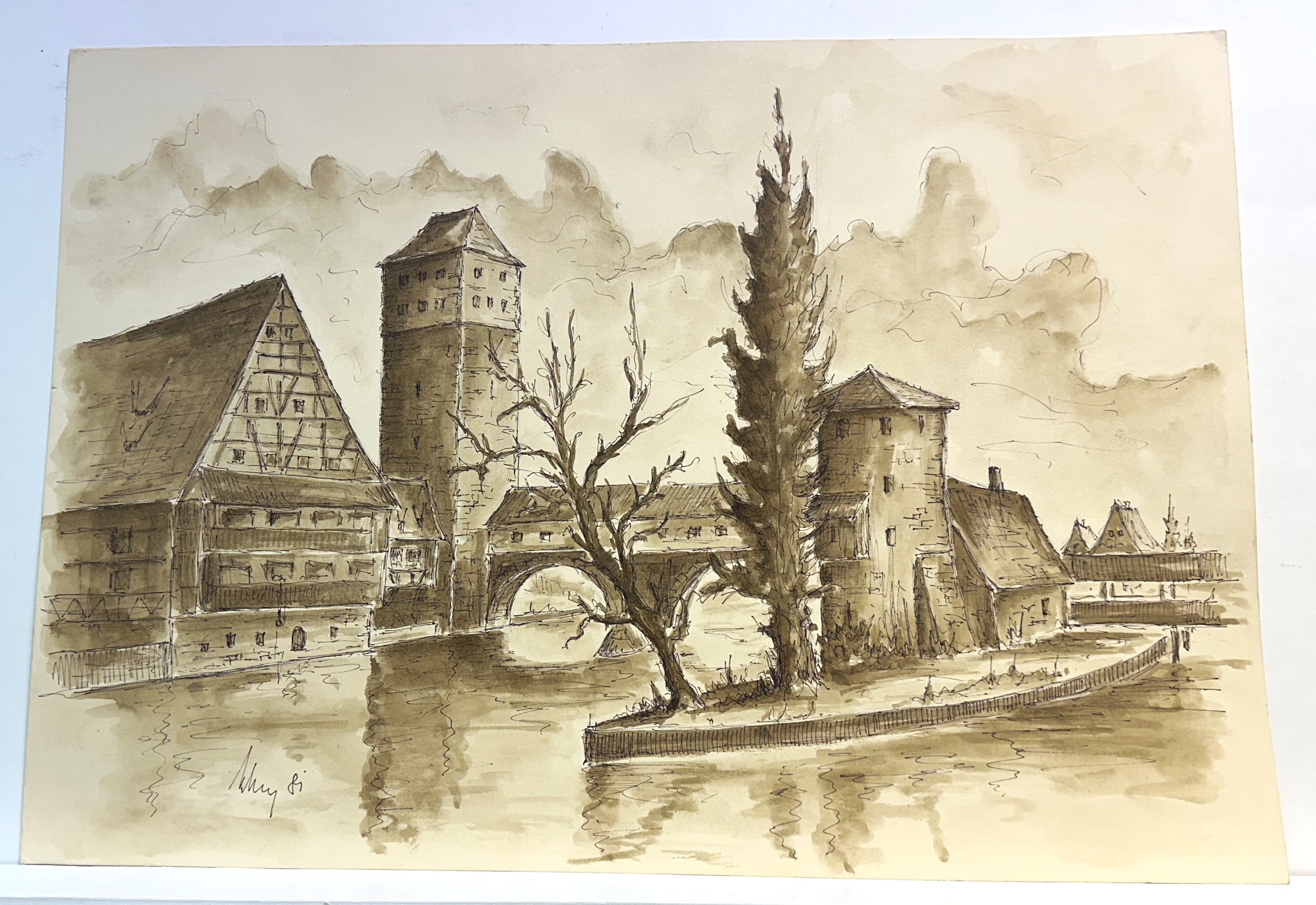 Henkersteg Nürnberg Sepiazeichnung Maße: 59 x 35 cm unten links Signiert
