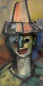 Lotte Wolf wurde 1909 in Kempten geboren. Sie studierte 1933/34, also während der Machtübernahme der Nationalsozialisten, an der Staatsschule für angewandte Kunst bei den Professoren: Emma Hoffmann, Max Körner, Karl Dotzler in Nürnberg. Gemäß der expressionistischen Ausrichtung ihrer Kunst hatte sie zu Beginn ihrer Laufbahn keine Chance, Fuß zu fassen und begann ihre Arbeiten erst nach dem Zweiten Weltkrieg auszustellen. Ihr frühes Werk, bestehend aus Portraits, Landschaften und Stillleben, fällt demnach in die Zeit der Künstler der "Verlorenen Generation", die sich nach dem Zweiten Weltkrieg oftmals der Abstraktion zuwandten, so auch Lotte Wolf. Nach ihrer Heirat, wohl ab 1975, nannte sie sich Lotte Wolf-Koch. Die teils harten Konturen der schwarzen Partien in der vorliegenden Arbeit und das sanfte Sich-Aufstülpen der Farbe entlang mancher Konturenränder lassen vermuten, dass Wolf die Arbeit in der Art einer Monotypie gestaltete, womit sie stilistisch eng an Künstler wie Otto Lange heranrückt. Ihr Oeuvre umfasst Werke in Öl, Aquarell, Pastell, Druckgrafiken entstanden meist als Linolschnitte. Stellt seit 1949 aus u.a.: 1953 im Nürnberger Albrecht Dürer Verein sowie Sonderschau 1958 im Märk. Mus. in Witten, Rhur (ill. Kat.). Malte gegenständlich (Expressionistin) und abstrakt. Figürliches, Bildnisse, Landschaften, Stillleben.