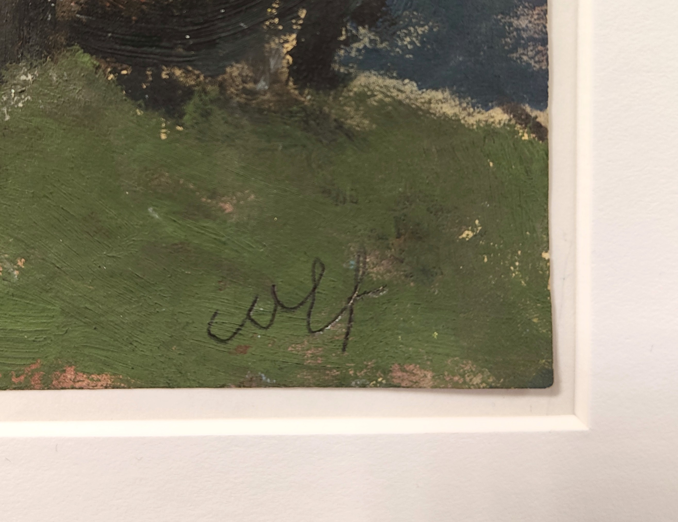 Lotte Wolf wurde 1909 in Kempten geboren. Sie studierte 1933/34, also während der Machtübernahme der Nationalsozialisten, an der Staatsschule für angewandte Kunst bei den Professoren: Emma Hoffmann, Max Körner, Karl Dotzler in Nürnberg. Gemäß der expressionistischen Ausrichtung ihrer Kunst hatte sie zu Beginn ihrer Laufbahn keine Chance, Fuß zu fassen und begann ihre Arbeiten erst nach dem Zweiten Weltkrieg auszustellen. Ihr frühes Werk, bestehend aus Portraits, Landschaften und Stillleben, fällt demnach in die Zeit der Künstler der "Verlorenen Generation", die sich nach dem Zweiten Weltkrieg oftmals der Abstraktion zuwandten, so auch Lotte Wolf. Nach ihrer Heirat, wohl ab 1975, nannte sie sich Lotte Wolf-Koch. Die teils harten Konturen der schwarzen Partien in der vorliegenden Arbeit und das sanfte Sich-Aufstülpen der Farbe entlang mancher Konturenränder lassen vermuten, dass Wolf die Arbeit in der Art einer Monotypie gestaltete, womit sie stilistisch eng an Künstler wie Otto Lange heranrückt. Ihr Oeuvre umfasst Werke in Öl, Aquarell, Pastell, Druckgrafiken entstanden meist als Linolschnitte. Stellt seit 1949 aus u.a.: 1953 im Nürnberger Albrecht Dürer Verein sowie Sonderschau 1958 im Märk. Mus. in Witten, Rhur (ill. Kat.). Malte gegenständlich (Expressionistin) und abstrakt. Figürliches, Bildnisse, Landschaften, Stillleben.