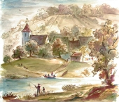 Ludwig Schäfer-Grohe (1909 Mainz-1983 Fellbach), deutscher Maler, Zeichner und Lithograph. Lithographen-Lehre, 1931 erste Sonderausstellung im Gutenberg-Museum Mainz. 1932 Studienfahrt nach Italien. 1934 Heirat mit der Malerin und Bildhauerin Susanne Grohe. 1936 Umzug nach Fellbach; Mitarbeit beim Stuttgarter Verlag und als freischaffender Künstler tätig. In eigener Planung: Städtebilder, künstleriche Bild-Landkarten, Malerfahrt - Bücher: u. a. Neckar/ Rhein/Tauber. Arbeiten in vielen Städten und Ländern. Nach Deutschland und Europa folgen Studienfahrten in ferne Gebiete: u.a. 1976 Marokko, 1977 Mesopotanien, 1978 Mexiko und Guatemala, 1979 Nepal-Indien-Sri Lanka, 1980 Ägypten. Besondere Aufträge wie z. B. 1979: Zeichnen in der Medici-Kapelle in Florenz für Fredy de Medicis, Brüssel. Ankäufe seiner Bilder u.a. von der Stadt Fellbach, dem Rems-Murr-Kreis, der Staatsgalerie Stuttgart. Literatur: Vollmer, Thieme Becker, Würtenbergisches Künstlerlexikon zahlreiche Zeitungsberichte/ Ausstellungsnachweise vorhanden.