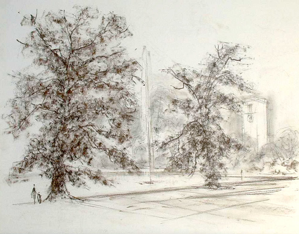 Ludwig Schäfer-Grohe (1909 Mainz-1983 Fellbach), deutscher Maler, Zeichner und Lithograph. Lithographen-Lehre, 1931 erste Sonderausstellung im Gutenberg-Museum Mainz. 1932 Studienfahrt nach Italien. 1934 Heirat mit der Malerin und Bildhauerin Susanne Grohe. 1936 Umzug nach Fellbach; Mitarbeit beim Stuttgarter Verlag und als freischaffender Künstler tätig. In eigener Planung: Städtebilder, künstleriche Bild-Landkarten, Malerfahrt - Bücher: u. a. Neckar/ Rhein/Tauber. Arbeiten in vielen Städten und Ländern. Nach Deutschland und Europa folgen Studienfahrten in ferne Gebiete: u.a. 1976 Marokko, 1977 Mesopotanien, 1978 Mexiko und Guatemala, 1979 Nepal-Indien-Sri Lanka, 1980 Ägypten. Besondere Aufträge wie z. B. 1979: Zeichnen in der Medici-Kapelle in Florenz für Fredy de Medicis, Brüssel. Ankäufe seiner Bilder u.a. von der Stadt Fellbach, dem Rems-Murr-Kreis, der Staatsgalerie Stuttgart. Literatur: Vollmer, Thieme Becker, Würtenbergisches Künstlerlexikon zahlreiche Zeitungsberichte/ Ausstellungsnachweise vorhanden.