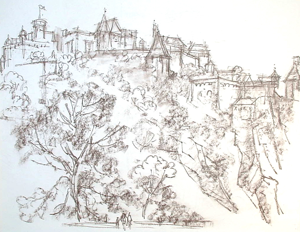 Ludwig Schäfer-Grohe (1909 Mainz-1983 Fellbach), deutscher Maler, Zeichner und Lithograph. Lithographen-Lehre, 1931 erste Sonderausstellung im Gutenberg-Museum Mainz. 1932 Studienfahrt nach Italien. 1934 Heirat mit der Malerin und Bildhauerin Susanne Grohe. 1936 Umzug nach Fellbach; Mitarbeit beim Stuttgarter Verlag und als freischaffender Künstler tätig. In eigener Planung: Städtebilder, künstleriche Bild-Landkarten, Malerfahrt - Bücher: u. a. Neckar/ Rhein/Tauber. Arbeiten in vielen Städten und Ländern. Nach Deutschland und Europa folgen Studienfahrten in ferne Gebiete: u.a. 1976 Marokko, 1977 Mesopotanien, 1978 Mexiko und Guatemala, 1979 Nepal-Indien-Sri Lanka, 1980 Ägypten. Besondere Aufträge wie z. B. 1979: Zeichnen in der Medici-Kapelle in Florenz für Fredy de Medicis, Brüssel. Ankäufe seiner Bilder u.a. von der Stadt Fellbach, dem Rems-Murr-Kreis, der Staatsgalerie Stuttgart. Literatur: Vollmer, Thieme Becker, Würtenbergisches Künstlerlexikon zahlreiche Zeitungsberichte/ Ausstellungsnachweise vorhanden.