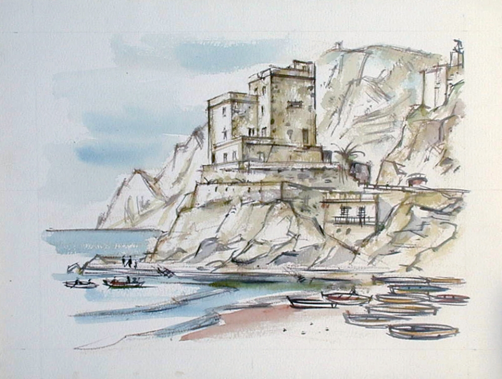 Ludwig Schäfer-Grohe (1909 Mainz-1983 Fellbach), deutscher Maler, Zeichner und Lithograph. Lithographen-Lehre, 1931 erste Sonderausstellung im Gutenberg-Museum Mainz. 1932 Studienfahrt nach Italien. 1934 Heirat mit der Malerin und Bildhauerin Susanne Grohe. 1936 Umzug nach Fellbach; Mitarbeit beim Stuttgarter Verlag und als freischaffender Künstler tätig. In eigener Planung: Städtebilder, künstleriche Bild-Landkarten, Malerfahrt - Bücher: u. a. Neckar/ Rhein/Tauber. Arbeiten in vielen Städten und Ländern. Nach Deutschland und Europa folgen Studienfahrten in ferne Gebiete: u.a. 1976 Marokko, 1977 Mesopotanien, 1978 Mexiko und Guatemala, 1979 Nepal-Indien-Sri Lanka, 1980 Ägypten. Besondere Aufträge wie z. B. 1979: Zeichnen in der Medici-Kapelle in Florenz für Fredy de Medicis, Brüssel. Ankäufe seiner Bilder u.a. von der Stadt Fellbach, dem Rems-Murr-Kreis, der Staatsgalerie Stuttgart. Literatur: Vollmer, Thieme Becker, Würtenbergisches Künstlerlexikon zahlreiche Zeitungsberichte/ Ausstellungsnachweise vorhanden.