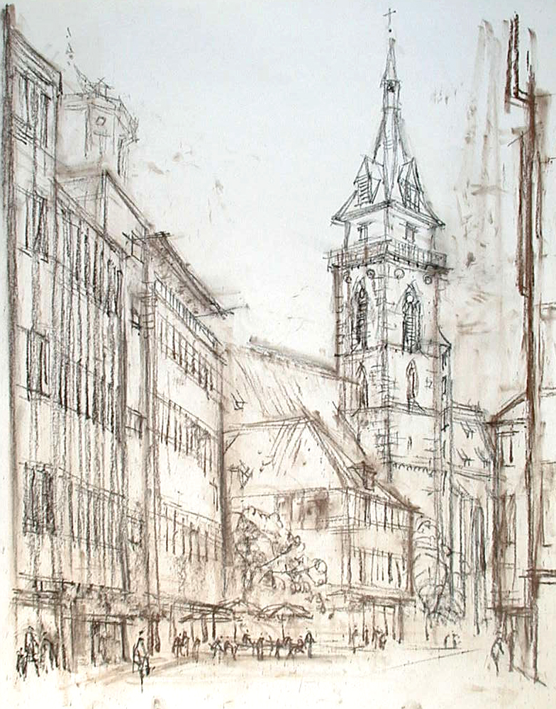 Ludwig Schäfer-Grohe (1909 Mainz-1983 Fellbach), deutscher Maler, Zeichner und Lithograph. Lithographen-Lehre, 1931 erste Sonderausstellung im Gutenberg-Museum Mainz. 1932 Studienfahrt nach Italien. 1934 Heirat mit der Malerin und Bildhauerin Susanne Grohe. 1936 Umzug nach Fellbach; Mitarbeit beim Stuttgarter Verlag und als freischaffender Künstler tätig. In eigener Planung: Städtebilder, künstleriche Bild-Landkarten, Malerfahrt - Bücher: u. a. Neckar/ Rhein/Tauber. Arbeiten in vielen Städten und Ländern. Nach Deutschland und Europa folgen Studienfahrten in ferne Gebiete: u.a. 1976 Marokko, 1977 Mesopotanien, 1978 Mexiko und Guatemala, 1979 Nepal-Indien-Sri Lanka, 1980 Ägypten. Besondere Aufträge wie z. B. 1979: Zeichnen in der Medici-Kapelle in Florenz für Fredy de Medicis, Brüssel. Ankäufe seiner Bilder u.a. von der Stadt Fellbach, dem Rems-Murr-Kreis, der Staatsgalerie Stuttgart. Literatur: Vollmer, Thieme Becker, Würtenbergisches Künstlerlexikon zahlreiche Zeitungsberichte/ Ausstellungsnachweise vorhanden.