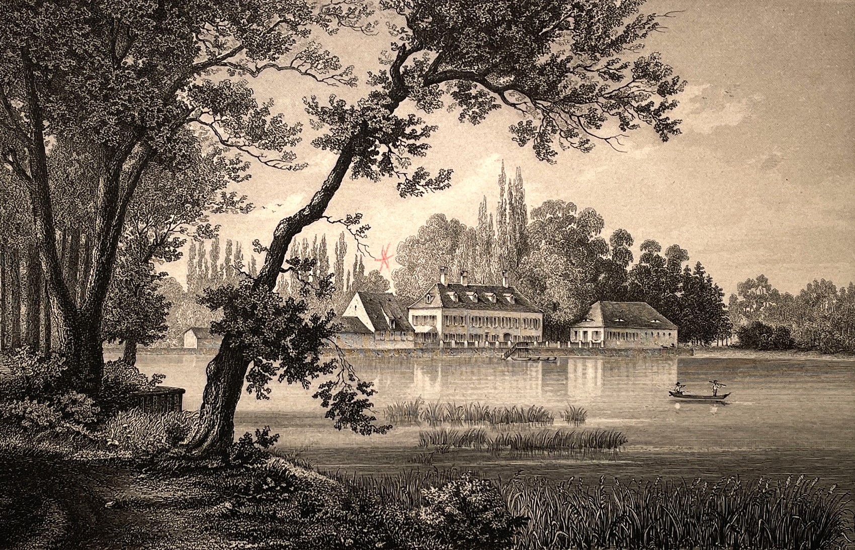 Dutzendteich Stahlstich Maße 18 x 13 cm unten rechts in Platte signiert