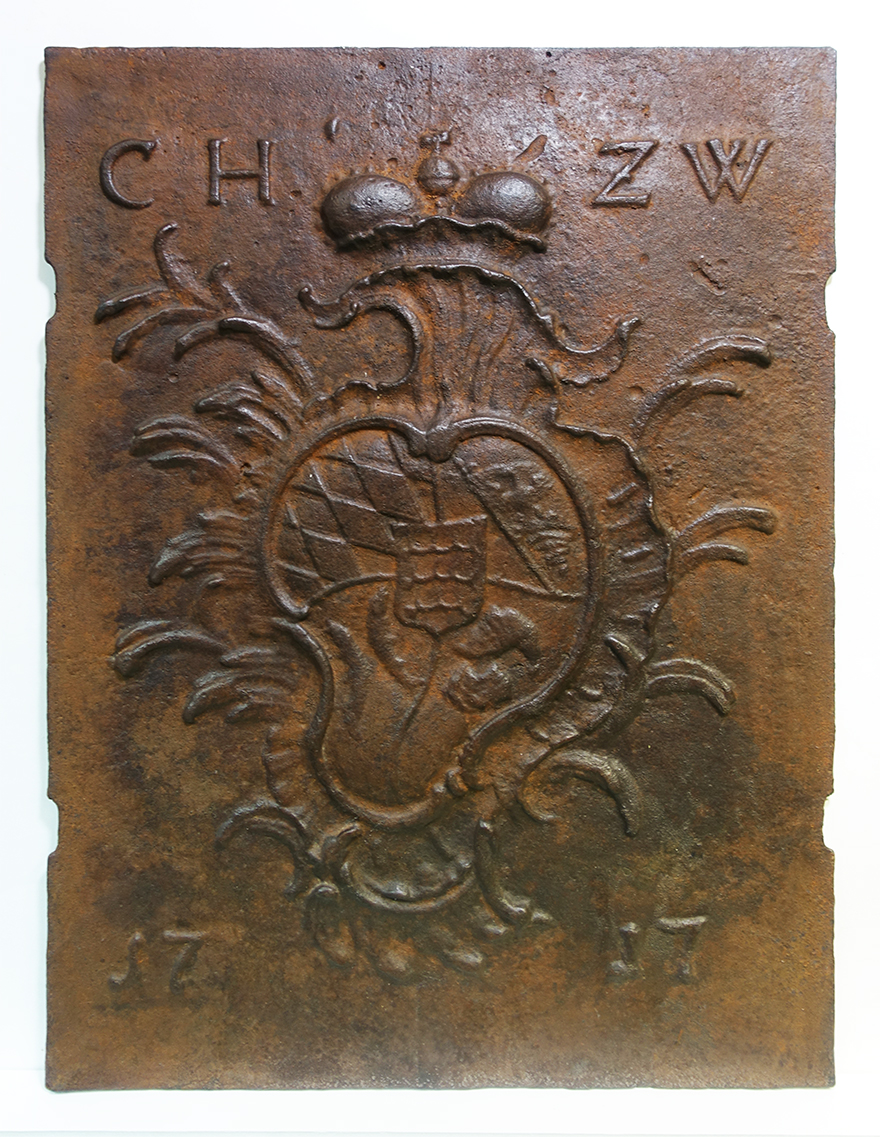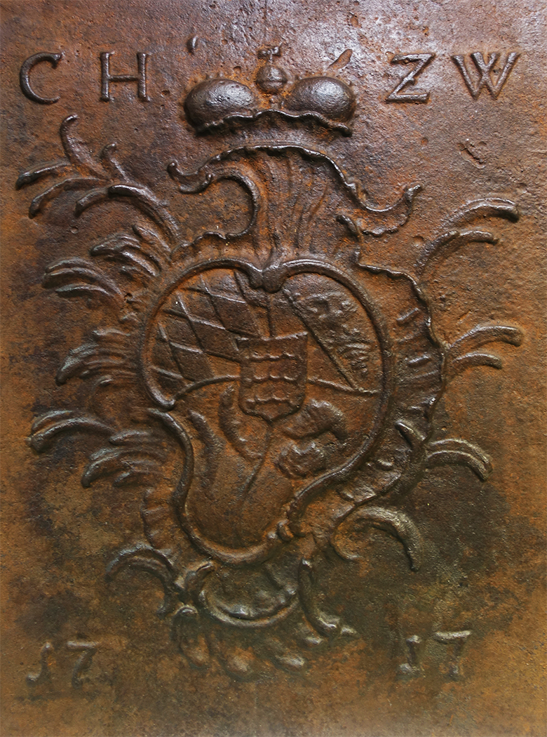 Ofen-Gusplatte Maße: 60,5 x 45,5 cm Monogramm CH und ZW für Carl Eugen Herzog zu Württemberg (1728-1793) Sehr schwer über 20 kg