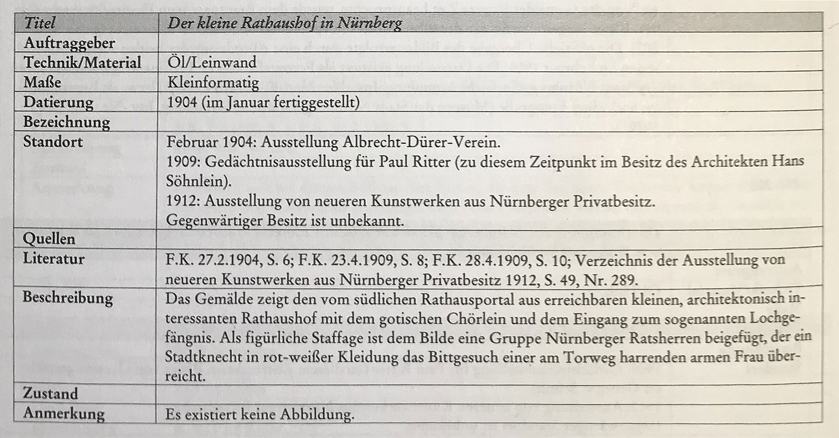 Paul Ritter gilt als der wichtigste Architekturmaler des deutschen Historismus. Zum 100. Todestag wurde er im Herbst 2007 von der Gemälde- und Skulpturensammlung der Museen der Stadt Nürnberg durch eine große Ausstellung gewürdigt. Paul Ritter blieb unverheiratet und hatte keine Nachkommen.[1] Er pflegte jedoch eine enge Beziehung zu seinem Bruder Lorenz und zu dessen Kindern. Er wurde am 29. November 1907 auf dem Nürnberger Johannisfriedhof begraben, wo sich sein Grab (St. Johannis IE / 145) noch heute befindet.