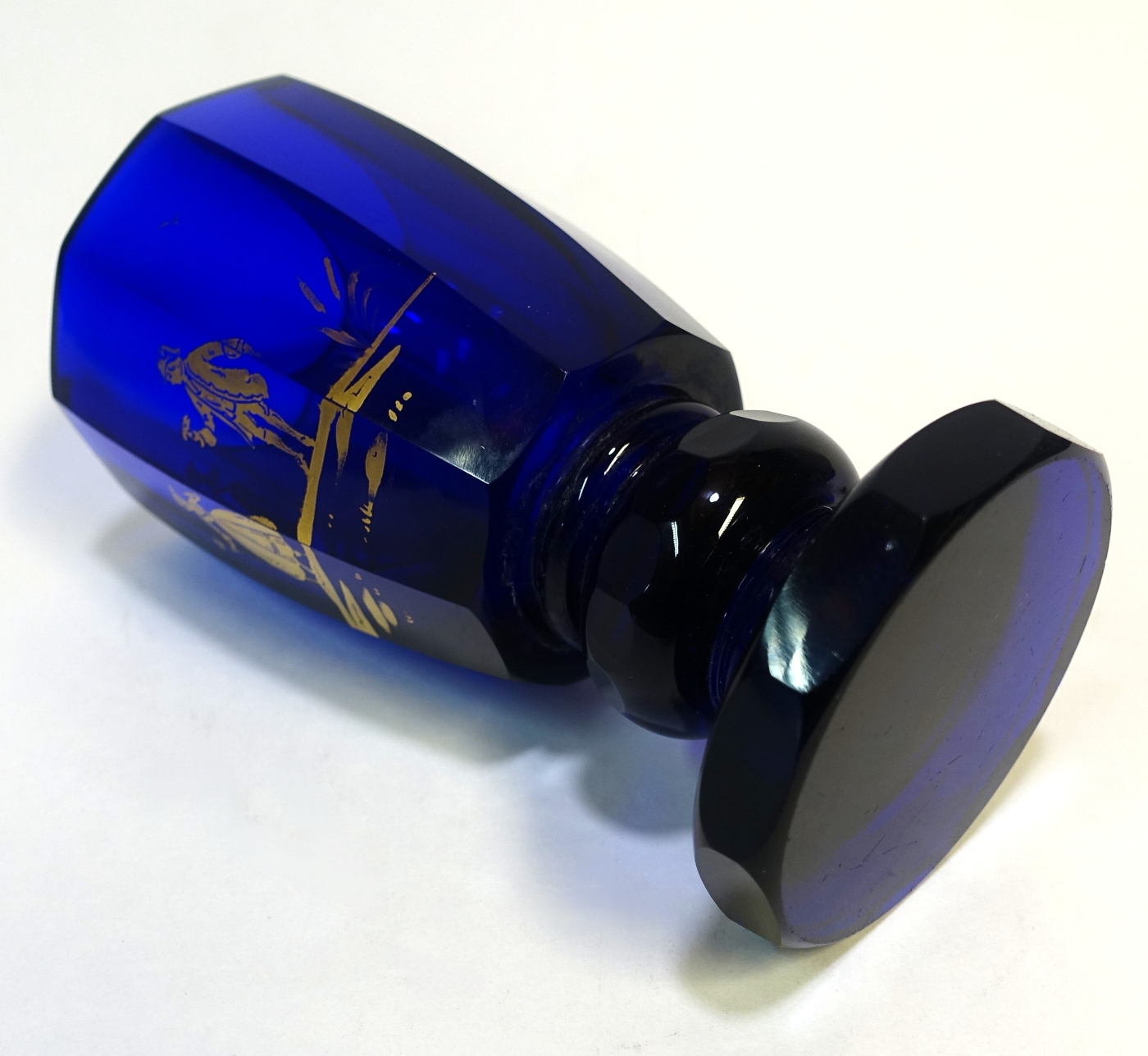 Pokalglas, kobaltblau mit Rokoko Szene in Goldmalerei