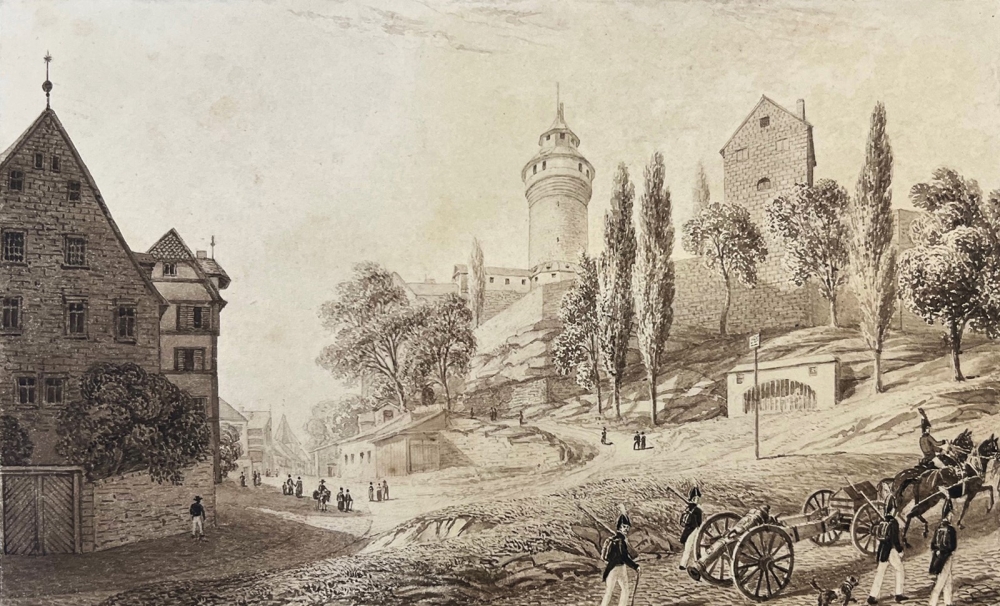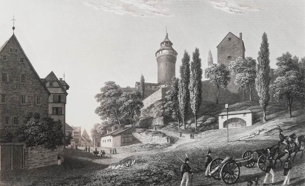 Blick auf die Burg von Nürnberg, Mit dem Ölberg im Vordergrund