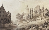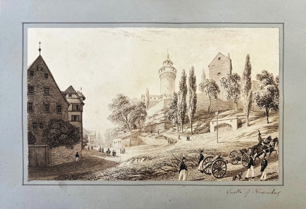 Orginal Vorzeichnung zu einem Stahlstich aus dem in London erschienenen Werk: "German Scenery" 1824