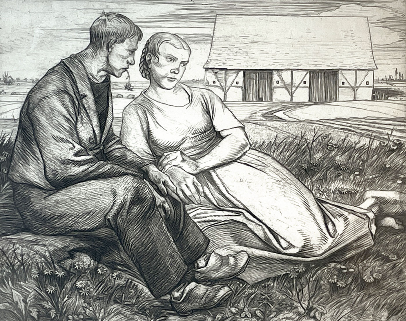 Bäuerliches Liebespaar sitzend