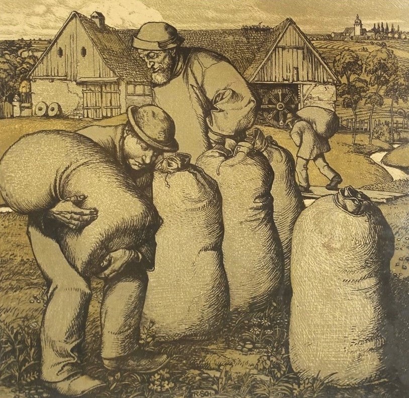 Rudolf Schiestl, Prof. (08.08.1878 in Würzburg - 30.11.1931 in Nürnberg): Graphiker und Maler. Begann mit 12 Jahren eine Lehre im Bildhaueratelier seines Vaters. 1896 Besuch der Akademie in München. Im Herbst 1898 ließ er sich in Kornhöfstadt im Steigerwald nieder. Im Sommer 1899 arbeitete er in der Tiroler Glasmalerwerkstatt in Innsbruck, 1900 schuf er Wandmalereien in der Pfalz. 1901 machte er sich selbstständig. In den Sommermonaten 1903, 1904 und 1907 besuchte er Italien, außerdem bereiste er Frankreich, Österreich, Holland und Norddeutschland. 1909/10 wurde er Nachfolger von Bek-Gran an der Nürnberger Kunstgewerbeschule, ab 1928 umbenannt in Staatsschule für angewandte Kunst, dort bis zu seinem Tod tätig, zuletzt als o. Professor für freie Graphik und Buchschmuck.