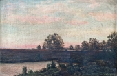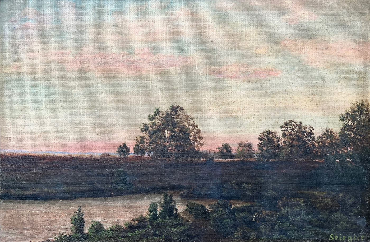 Landschaft - Dachauer Moos Öl auf Leinwad auf Karton Maße: 25 x 38 cm unten rechts signiert reinigungsbedürftig, Rahmen defekt