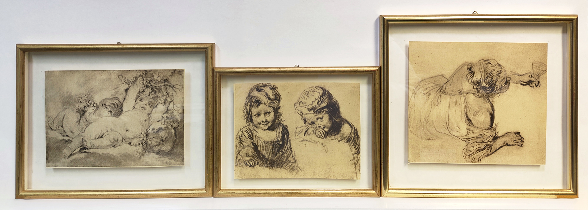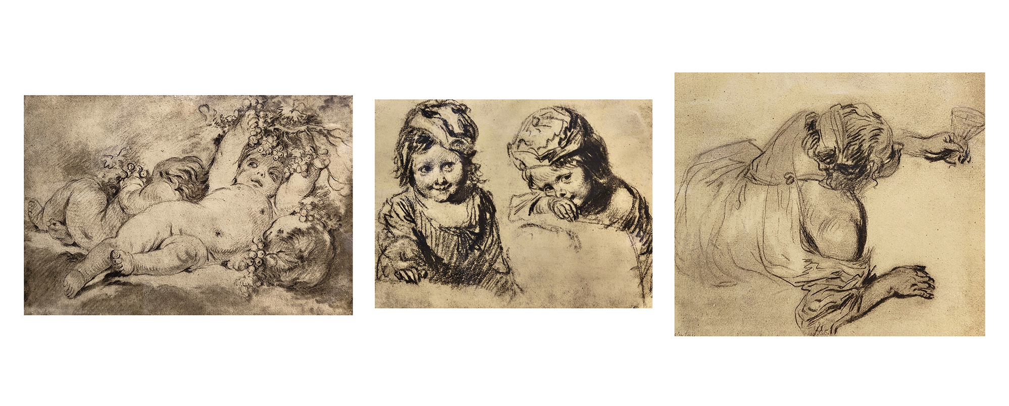 Konvolut von drei Kohlezeichnungen