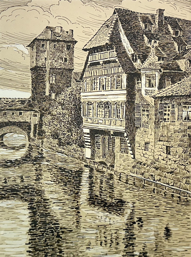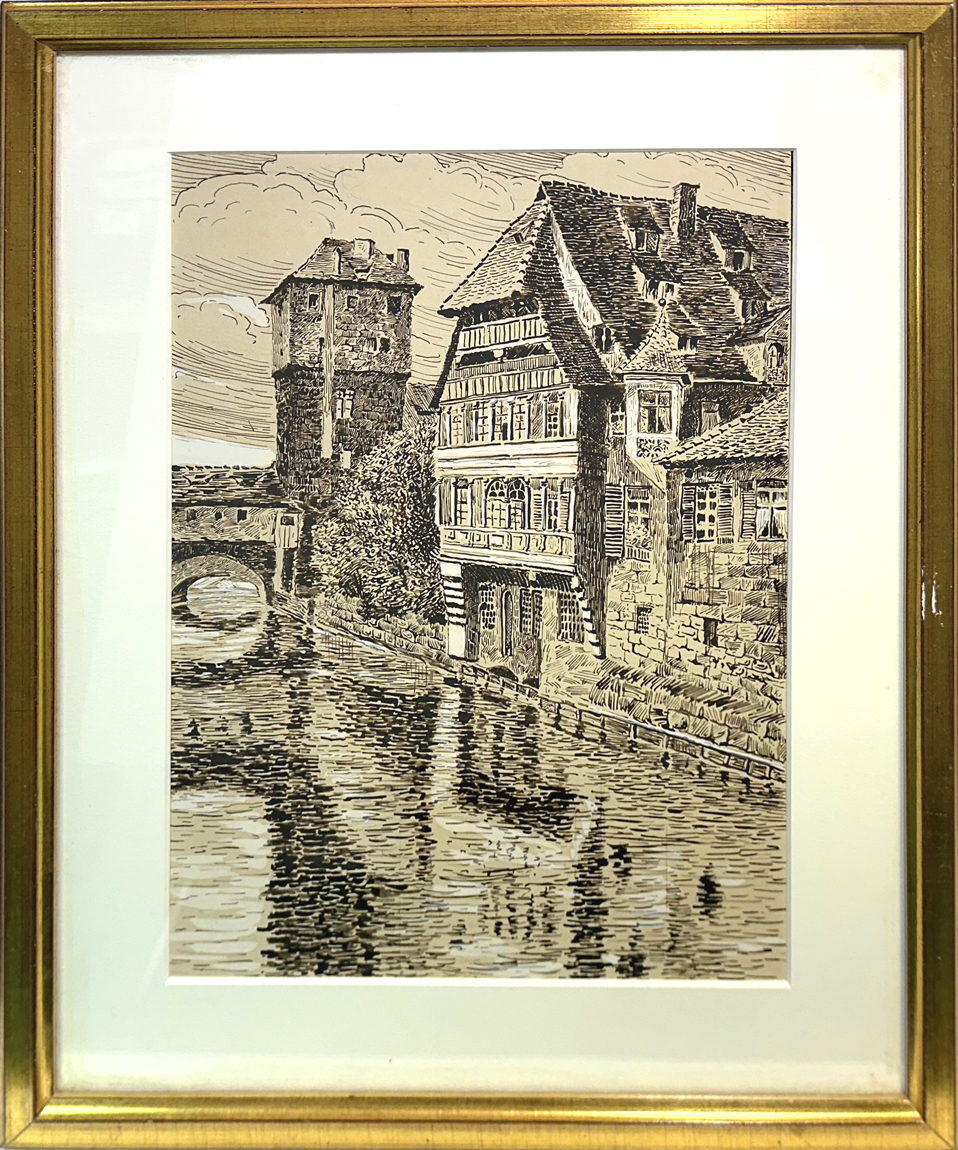 Nürnberg - Henkersteg mit Bayreischem Hof Sepiazeichnung Maße: 35 x 25 cm Maße mit Rahmen: 38 x 48 cm Unsigniert